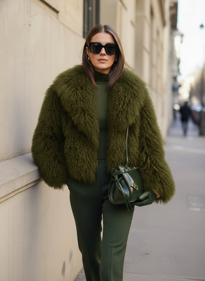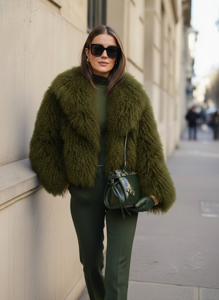This coat embodies the essence of understated luxury and timeless elegance. Its natural leather structure in soft silver tones creates a play of light and shadow that enhances the texture and volume of each stripe, providing a feeling of unmatched sophistication and warmth.